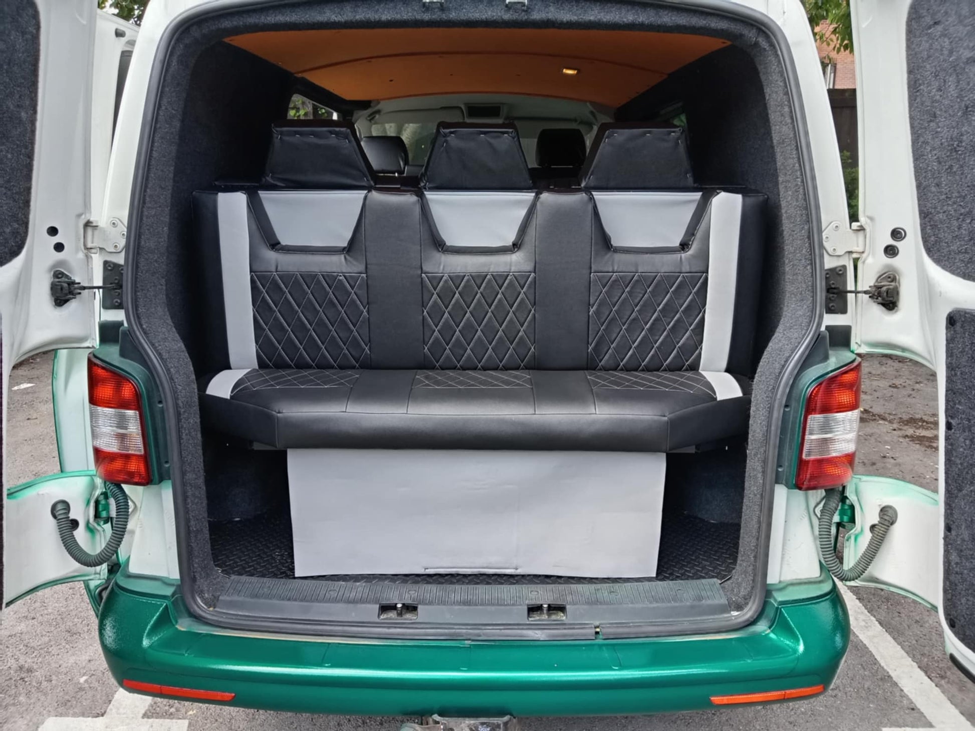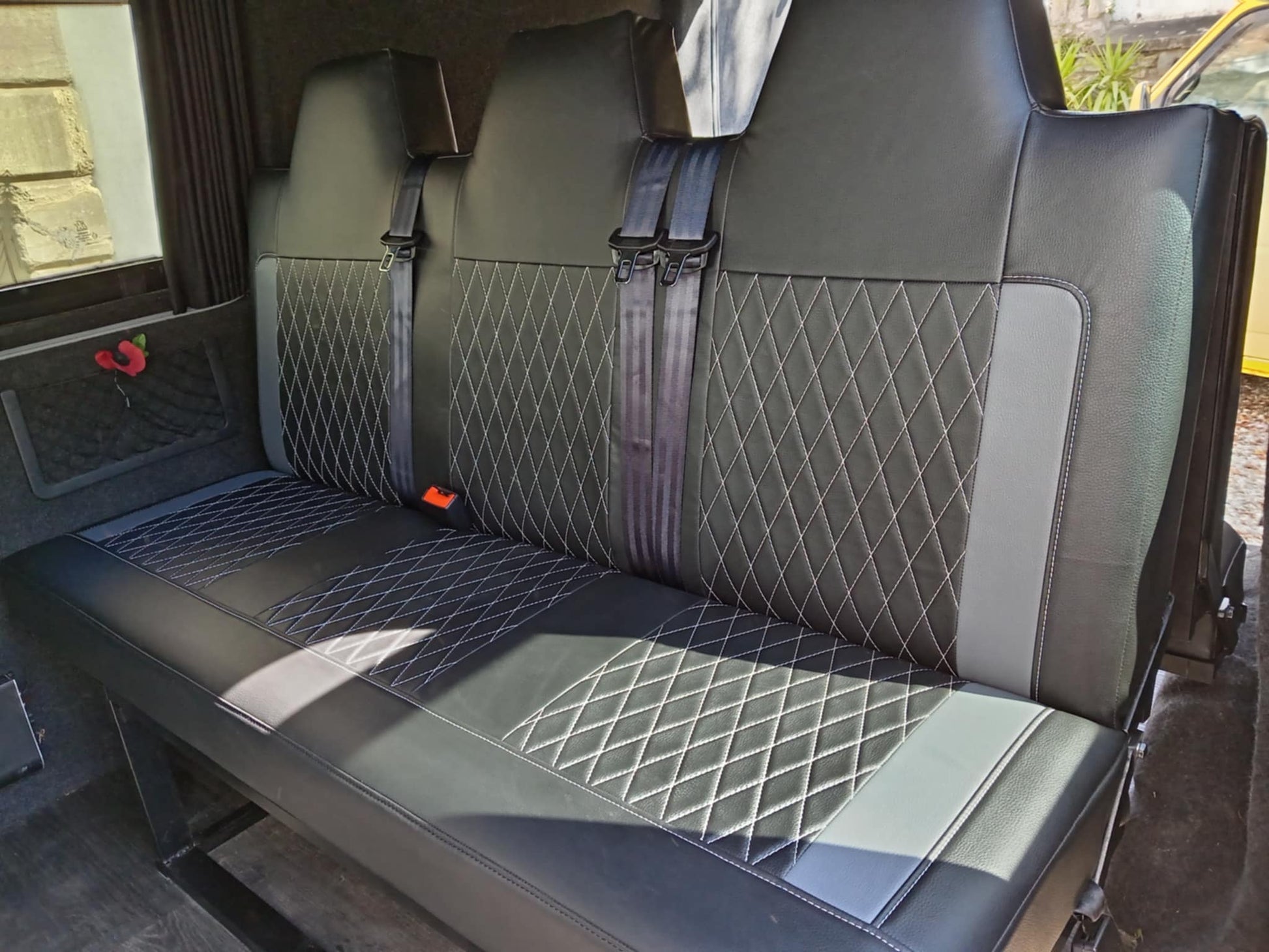 These are available in a huge range of vinyl leather and stitching colours. They come with 3 seat belts, headrest cut outs, logo of your choice in the headrests, fixing kit for VW T5 and T6's, including 2 spreader plates to go under the van for securely fixing to the chassis.